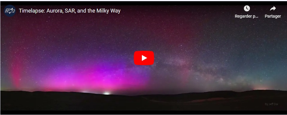 Vidéo en accéléré d'une aurore, d'un SAR et de la Voie lactée.