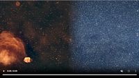 Trois sources importantes contribuent aux radiations de l'infrarouge lointain du ciel : le système solaire, la Voie lactée et l'Univers. Cette projection de la totalité de la sphère céleste montrant les sources d'émission de l'infrarouge lointain provient de plusieurs années d'observations réalisées par le satellite COBE (Cosmic Background Explorer). La contribution du système solaire est la forme du S bleu de l'image et elle provient surtout de la lumière zodiacale, rayonnement produit par de petits morceaux de roche et de poussière en orbite entre le Soleil et Jupiter. La Voie lactée est la bande brillante qui traverse à l'horizontale le milieu de l'image et ses radiations infrarouges proviennent en grande partie de la poussière présente dans le plan de notre galaxie. En y regardant de près, on constate que l'arrière-plan n'est pas entièrement noir. Une lueur diffuse provient de la poussière créée par la formation des étoiles de partout dans l'Univers. (Credit: DIRBE Team, COBE, NASA) 28 janvier 1998 |