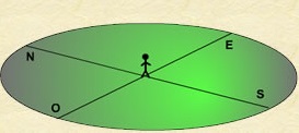 Cette figure montre l'horizon d'un observateur ainsi que les points cardinaux, soit le nord (N), l'est (E), le sud (S) et l'ouest (O).