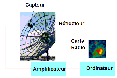 Ces signaux sont ensuite amplifiés et analysés par un ordinateur qui construit une carte radio des astres observés.