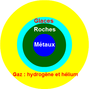 - Les planètes joviennes n'ont pas de croûte ou de surface liquide précise. La densité augmente graduellement lorsqu'on approche du centre. On passe de la phase gazeuse à la phase liquide puis solide.