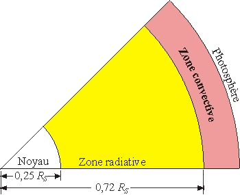 La zone radiative entoure le cœur et s'étend jusqu'à 72 % de la surface du Soleil.