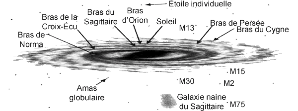 Cette figure montre les diverses composantes de la Voie lactée (adaptation française d'une figure de Richard Powell).
