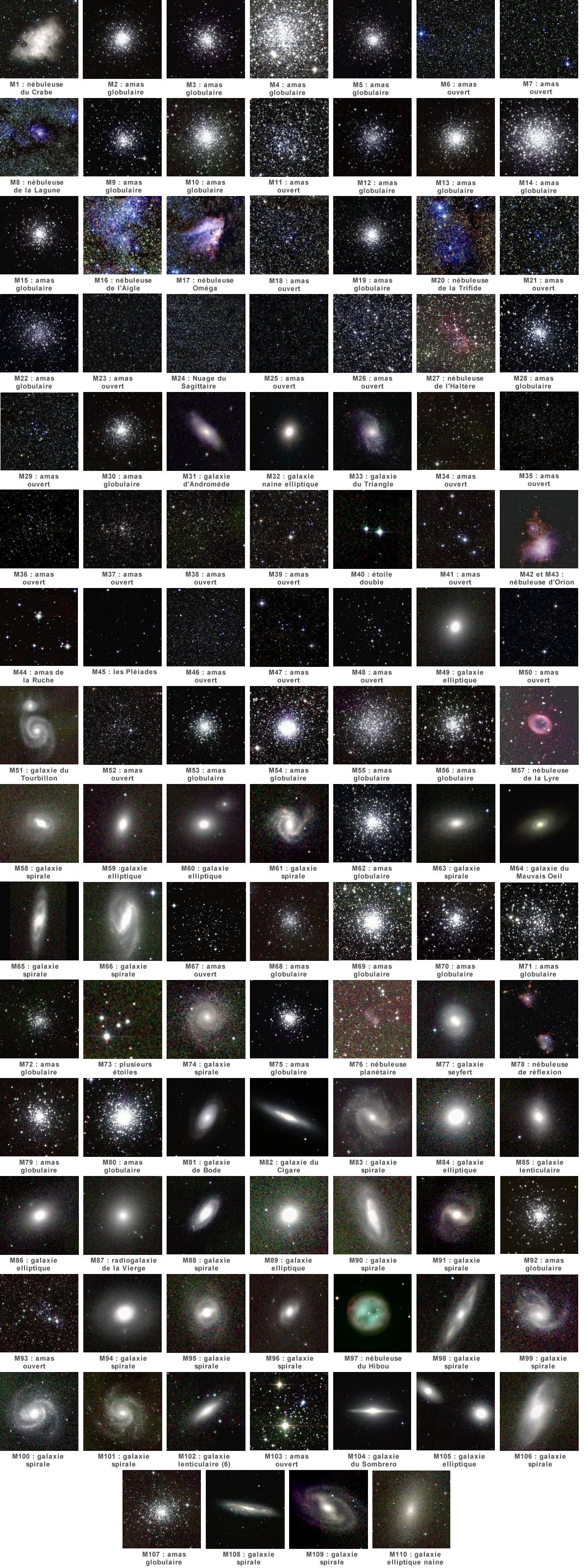 Pour une description plus détaillée des objets Messier, consultez ce site de l'organisation "Students for the Exploration and Development of Space (SEDS)". La même organisation met à notre disposition cette page qui contient une description de plusieurs objets du "New General Catalog (NGC)"