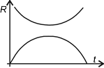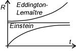 Les solutions possibles de l'évolution du facteur d'échelle R. Cliquez sur un graphique pour connaître l'évolution de l'univers représenté par ce graphique.