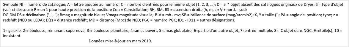 | NI | A | C | D | S | P | CON | RH | RM | RS | V | DG | DM | DS | BMAG | VMAG | B-V | SB | X | Y | PA | TYPE | z | D(z) | MD | PGC | ID1 | ID2 | ID3 | ID4 | ID5 | ID6 | ID7 | ID8 | ID9 | ||||||||||||||||||