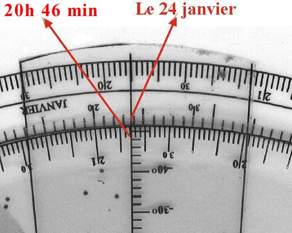 1) Déplacez la règle mobile jusqu'à la date du 24 janvier (voir figure ci-haut).